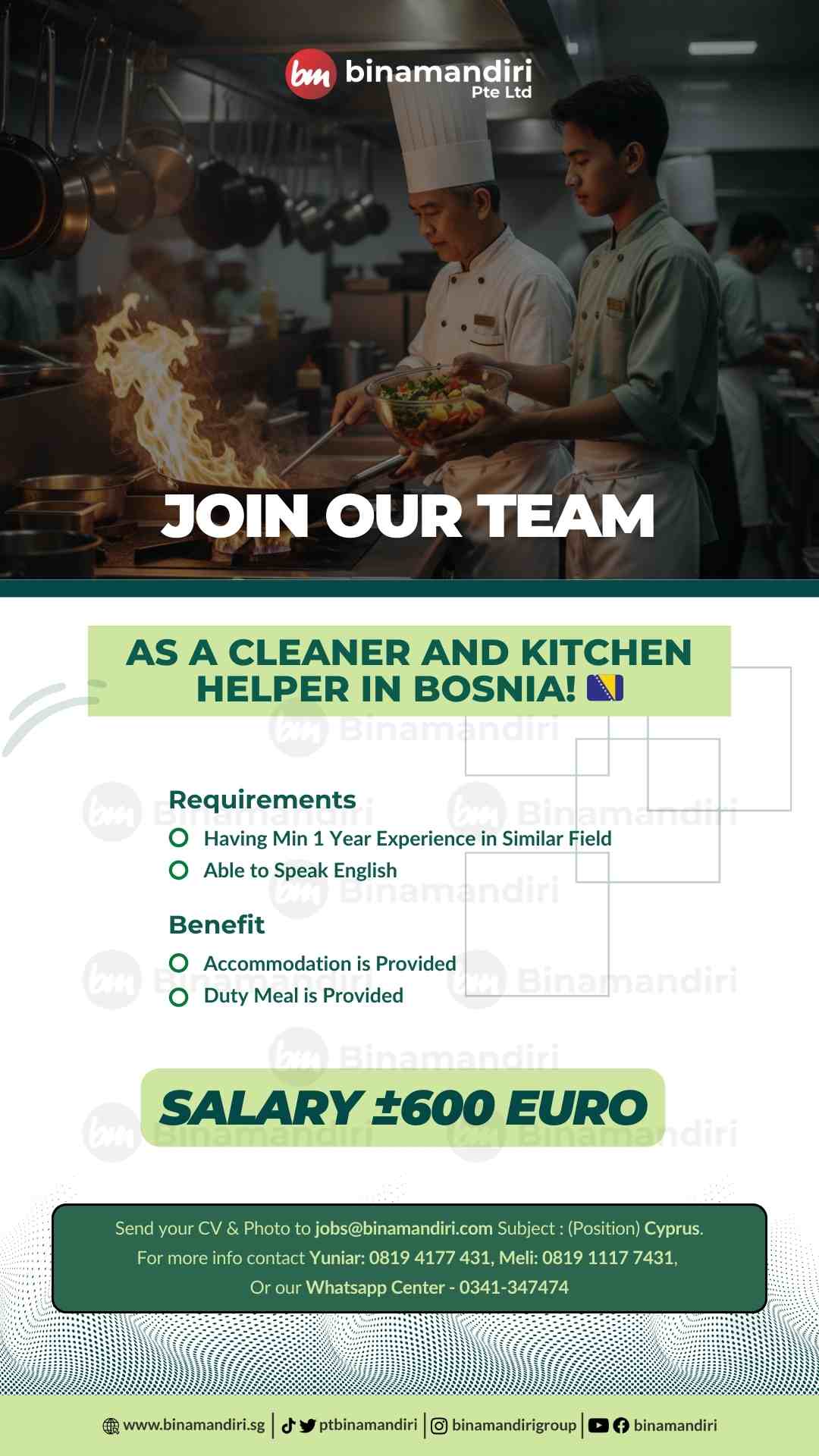If you are interested to apply, send your CV and Copy Passport to our email jobs@binamandiri.com
