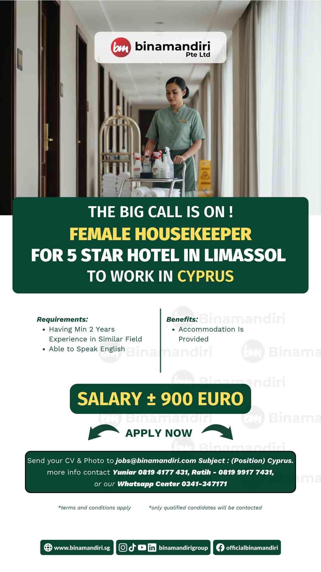 If you are interested to apply, send your CV and Copy Passport to our email jobs@binamandiri.com