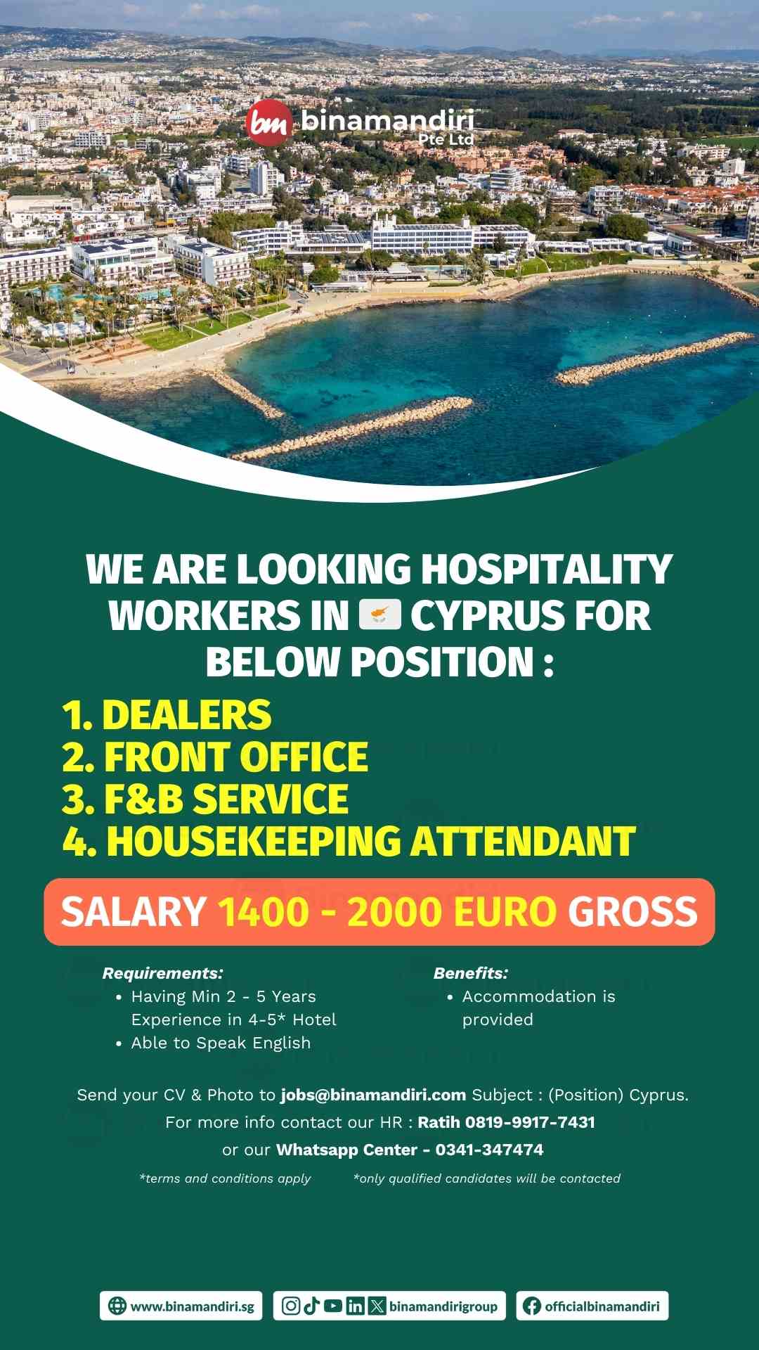 If you are interested to apply, send your CV and Copy Passport to our email jobs@binamandiri.com