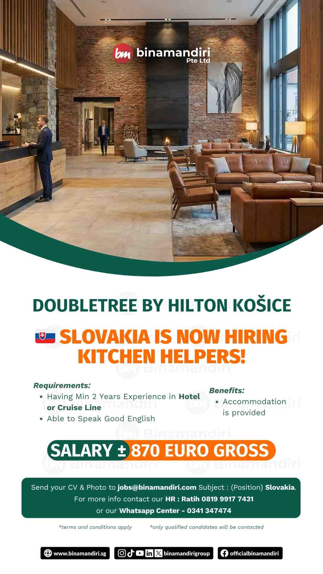 If you are interested to apply, send your CV and Copy Passport to our email jobs@binamandiri.com