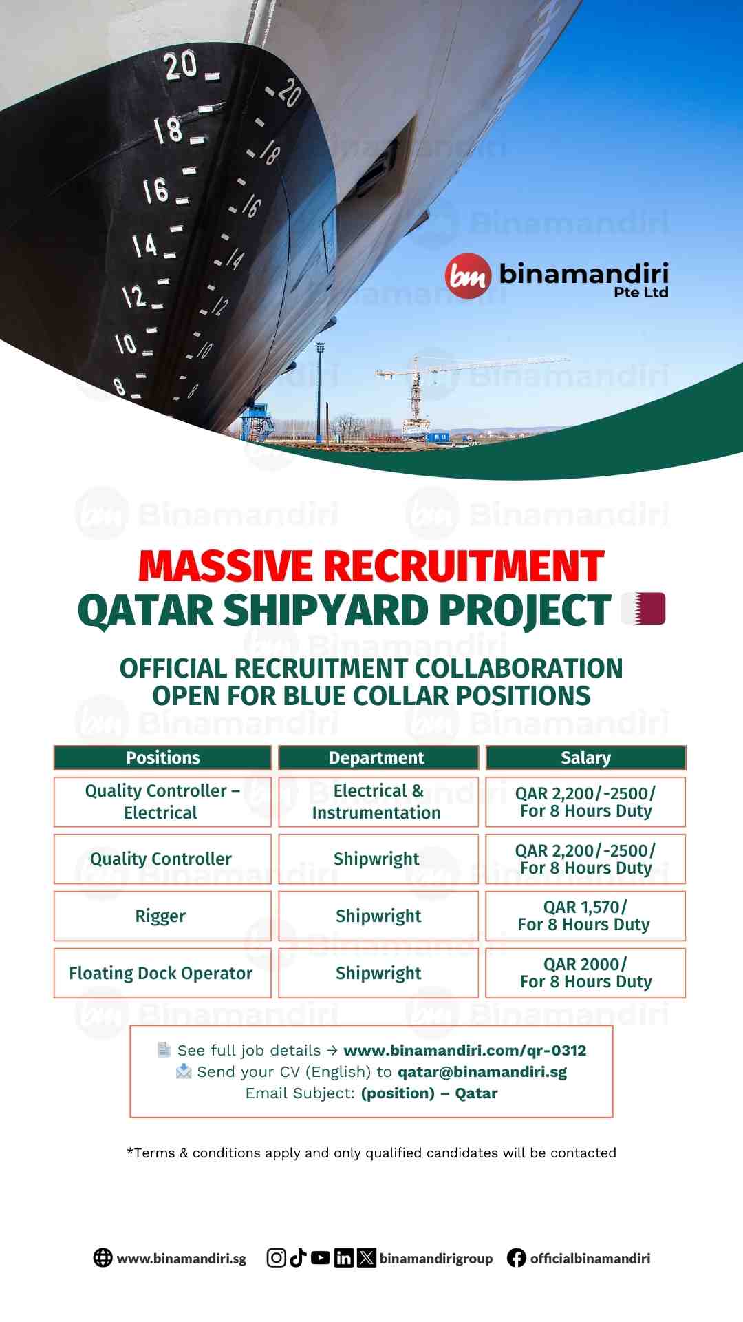 If you are interested to apply, send your CV and Copy Passport to our email jobs@binamandiri.com