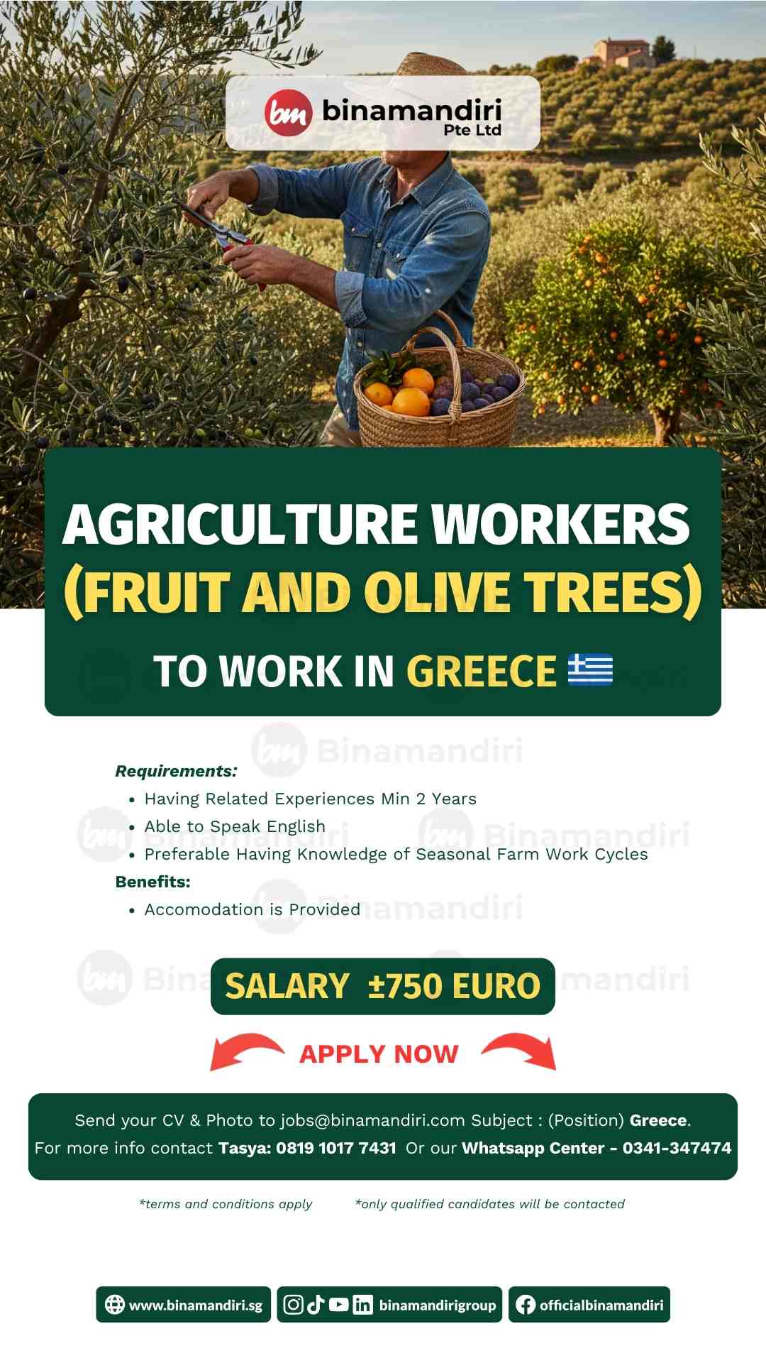 SEASONAL FOR AGRICULTURE WORKER – Greece
